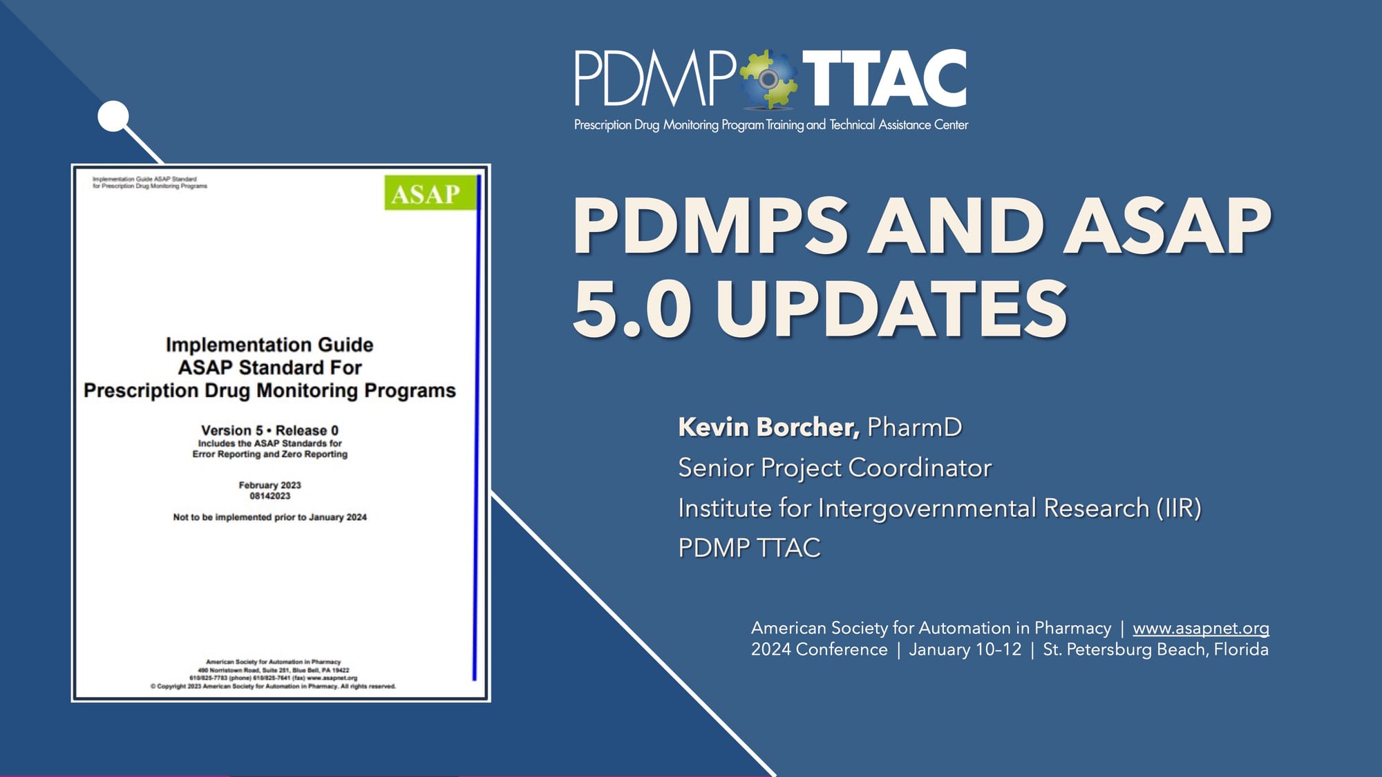 PTMR publisher, Bill Lockwood, talks to Kevin Borcher, Pharm.D., about the latest ASAP (American Society for Automation in Pharmacy) standard, V5.0. Borcher played a key role in framing up Version 5.0. During the development of the new implementation guide, he served as VP for PDMP (prescription drug monitoring program) and pharmacy programs at CyncHealth for Nebraska’s PDMP.